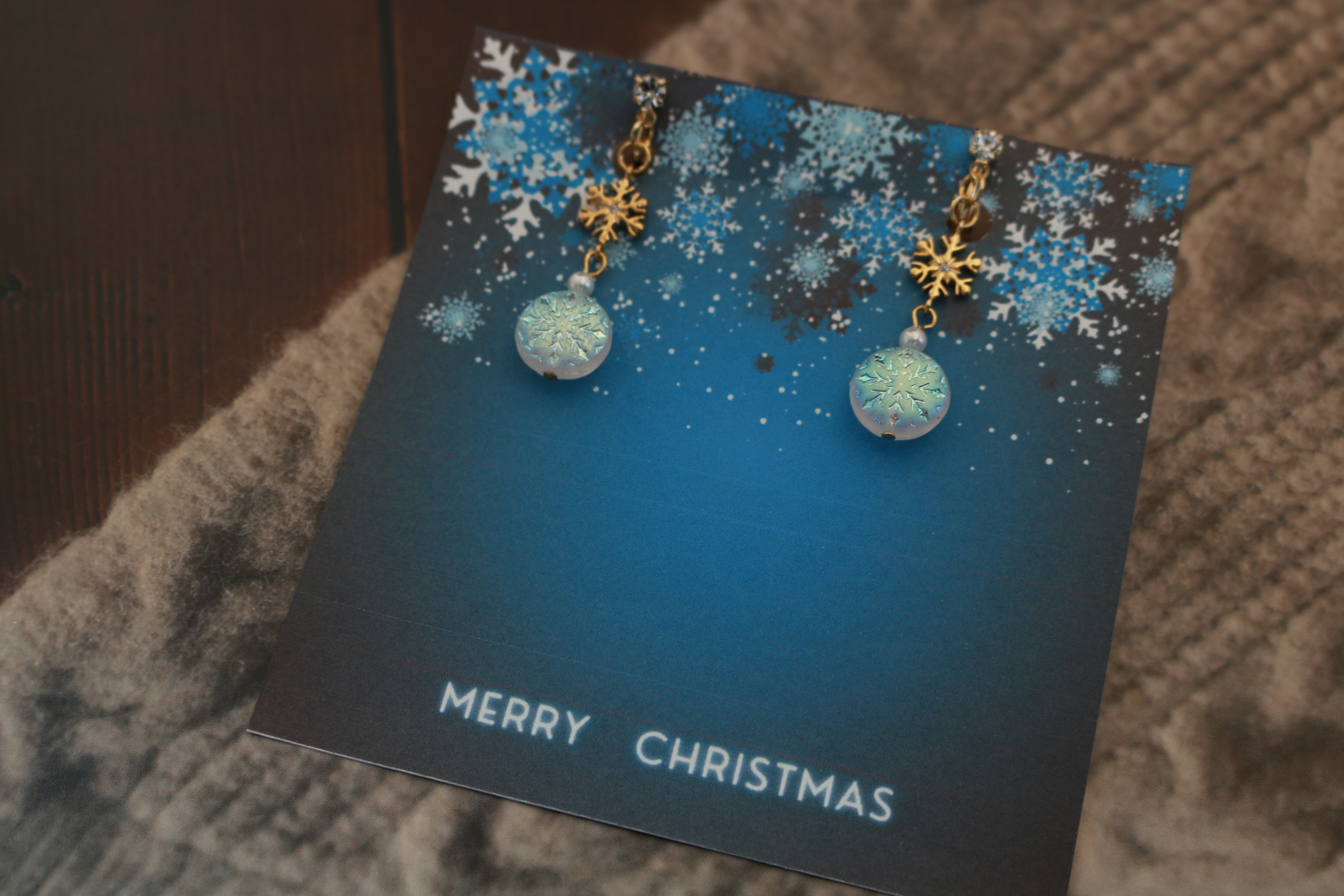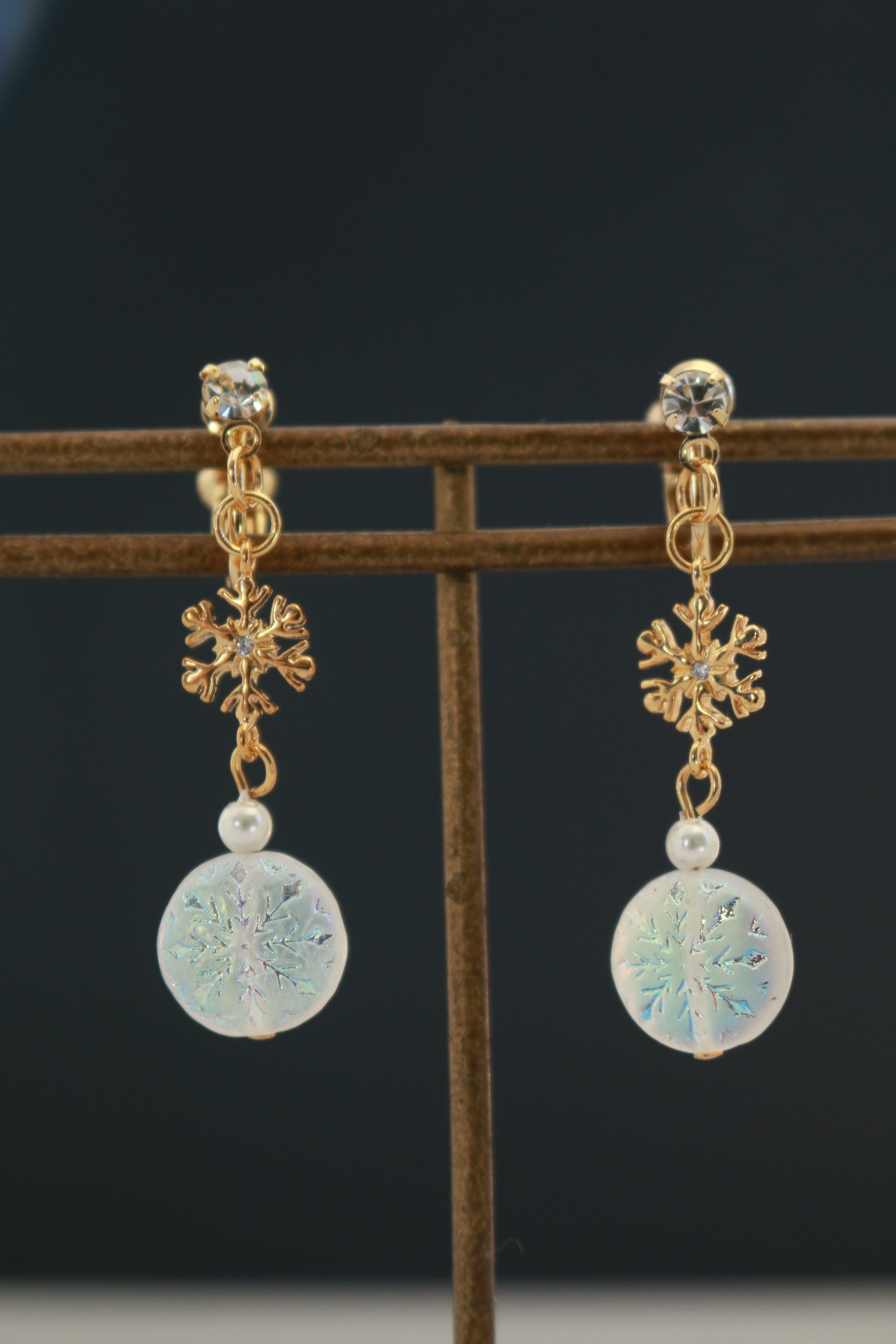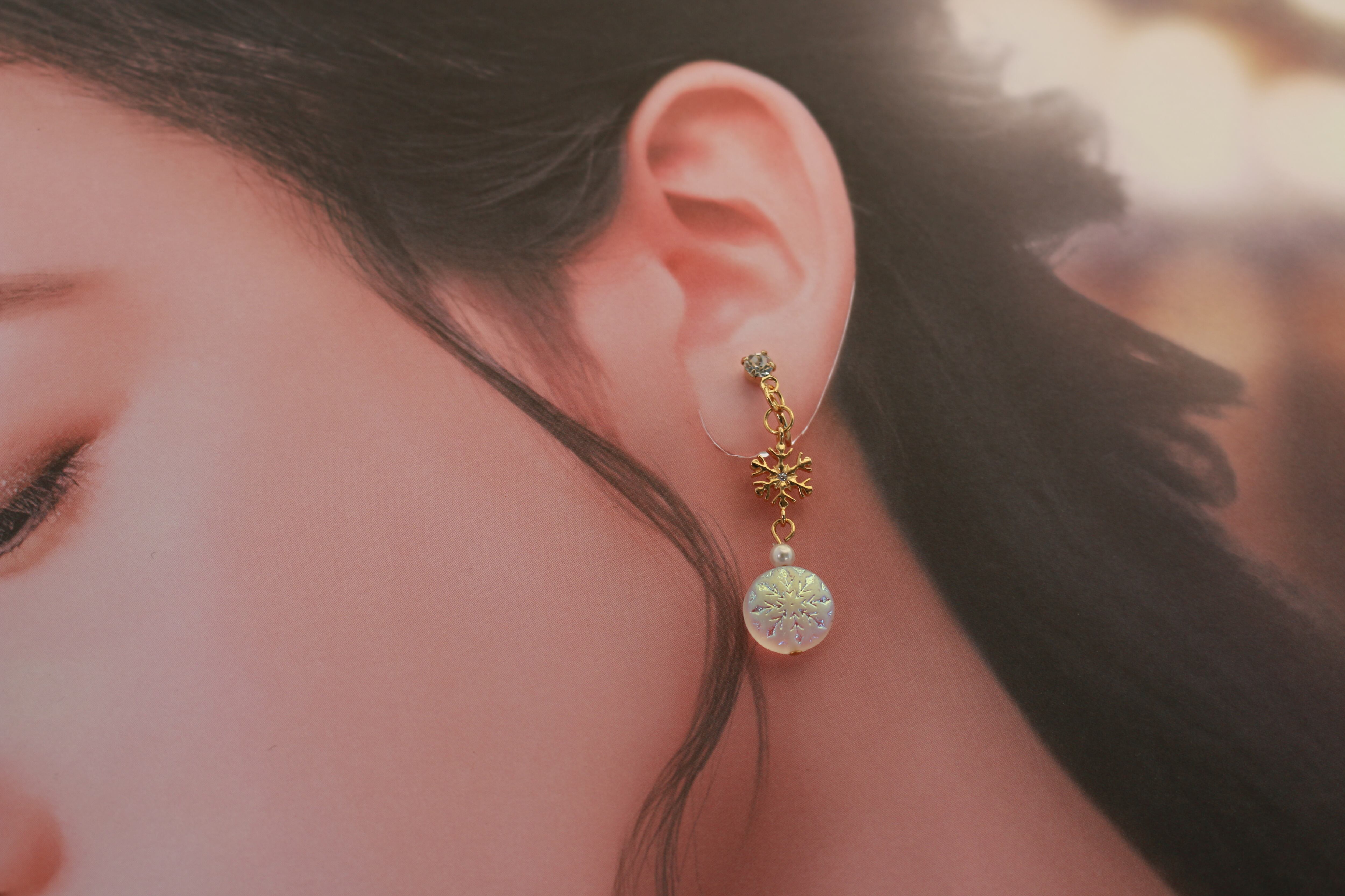 耳元で揺れる姿は、まるで冬の精霊が宿ったように神秘的です。